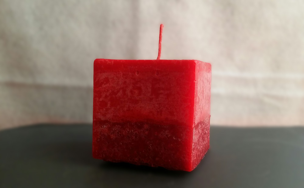 Vela decorativa de forma cuadrada. Disponible en varios colores.